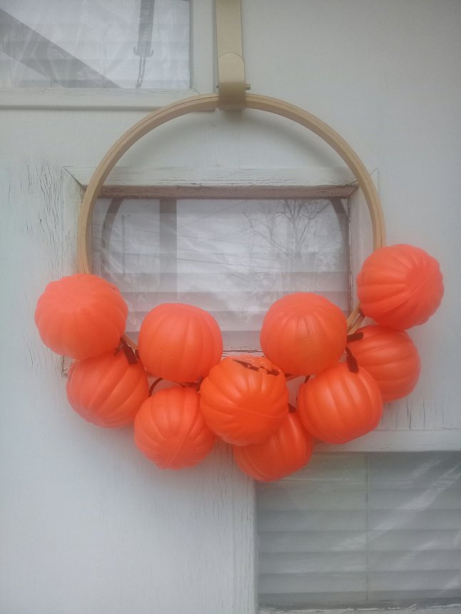 This morning I was browsing through my messenger post from #hometalk . It’s a wonderful DIY site. Anyhow, I saw a simple pumpkin wreath made with painted foam shapes glued to an embroidery hoop. That’s when inspiration struck!